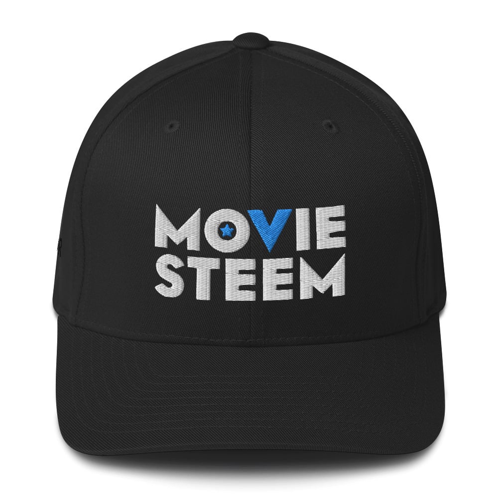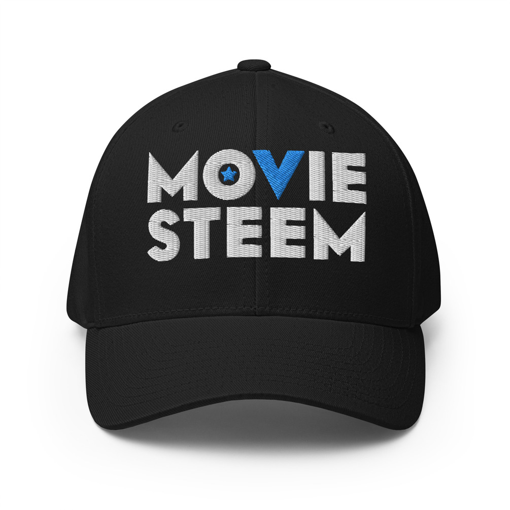 The Moviesteem Director Noir Brand Flexfit Cap structured cap has a sturdy body, a curved visor, and a silver underside. It comes in two sizes and has an elastic band for maximum stretch and comfort.